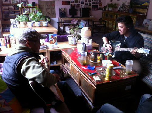 下午,因为弹琴,我认了骡子的邻居,同样在拉萨仙足岛开私家客栈的陕西音乐人老唐。老唐在来拉萨之前是深圳打拼的很有名的民谣歌手,陈楚生就是他带出来的。我们用吉他交流了一个下午,说了很多。