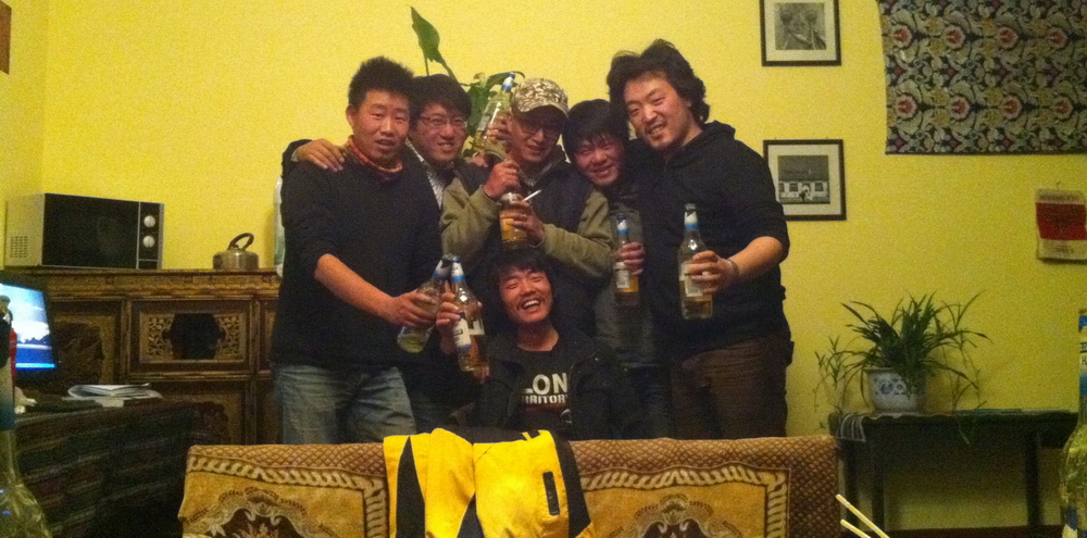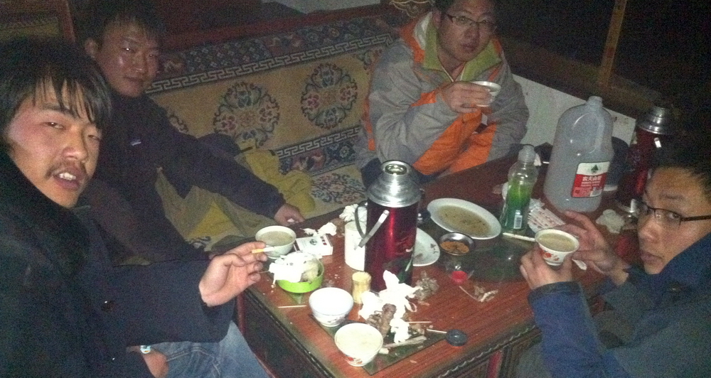 羊肉上桌!!!3小时煮透,一把盐巴;鲜美到极致,把我们和一帮上海的游客直接吃HIGH了,照片中左2的我们叫他蛇,青稞酒,酥油茶,鲜羊肉,还有纳木错的壮美,让他醉了。我想,他会像我当年第一次到西藏一样,永远记住这个夜晚。。