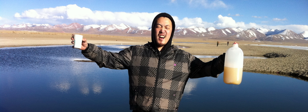 从拉萨带来的青稞酒,出发前和桥路说好在纳木错湖边,一边唱“卓玛”,一边畅饮,结果刚到湖边下车,走到水前坐下的几部功夫,就喝掉了一半。。。果然酒不醉人,人自醉!!!