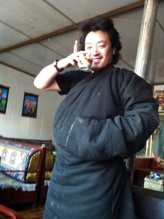 在湖边唱歌的时候,认识了当地的小伙子云丹,我们去他家吃羊肉,等着下锅的时候,我们交换了衣服,各自都很满意。云丹今年20岁,有7个孩子。。。