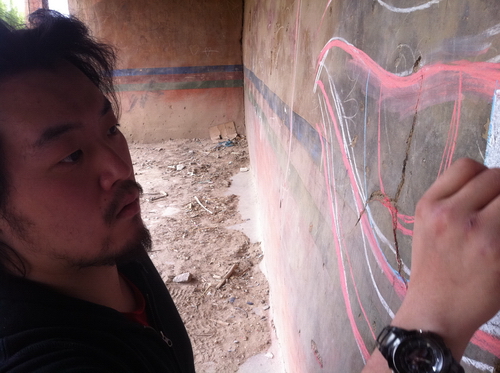 就要离开喜得林的时候,碰到了两个当地的孩子,他们说这是他们的地盘。在跟他们一起进行了喜得林地下探索之后我送给了他们一套画笔,要他们以后好好保护这个地方,不要再让别的人来破坏这里了。他们说好的!