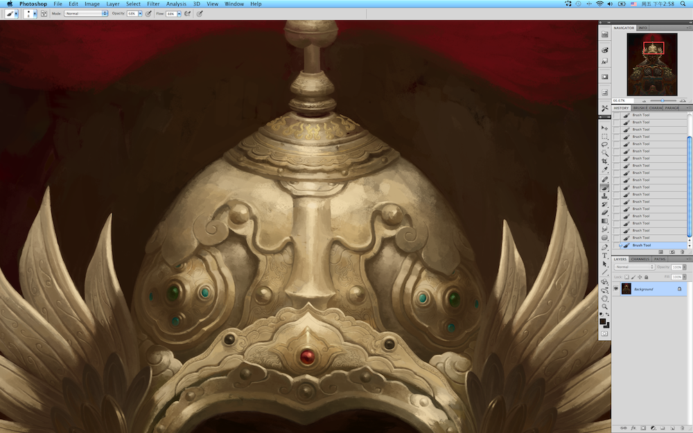 带着对祖先的崇敬,像手工艺人一样的去虔诚的创作。 绘制中的《千年》的封面。