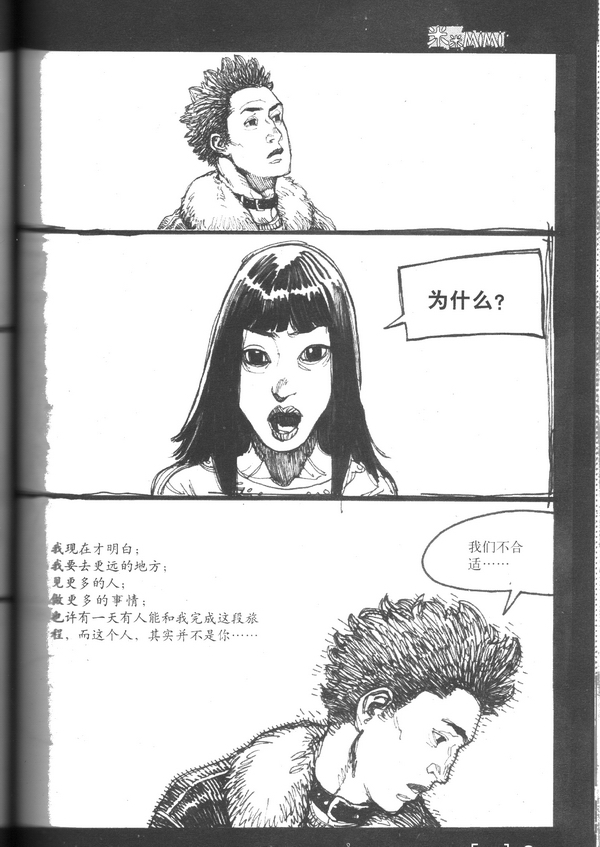 七年前的2004年。在火车上被原作者姚巍架愣着画了这个小故事。作为姚巍当时正在《北京卡通》上连载的长篇漫画《米米》的番外篇。这也是我唯一一次在《北京卡通》上发作品。忘记了是用了一天还是一晚的时间完成的。因为姚巍的原作是偏少女的风格,所以我也就没有太直接的使用自己的强硬画风,向她那边找了一点。但故事却还是很硬!这个故事如今看来有一些幼稚,甚至有些二。但是却是真实。请不要笑,年少的爱情,就是这样。
